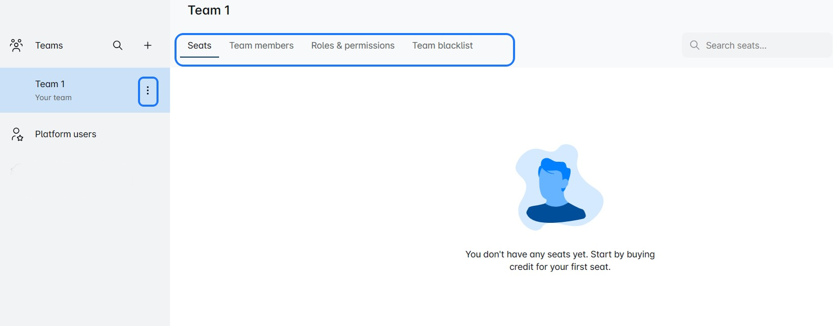 - Transfer seat credits: Wish to add more seats to your team? Here is where you can do that.