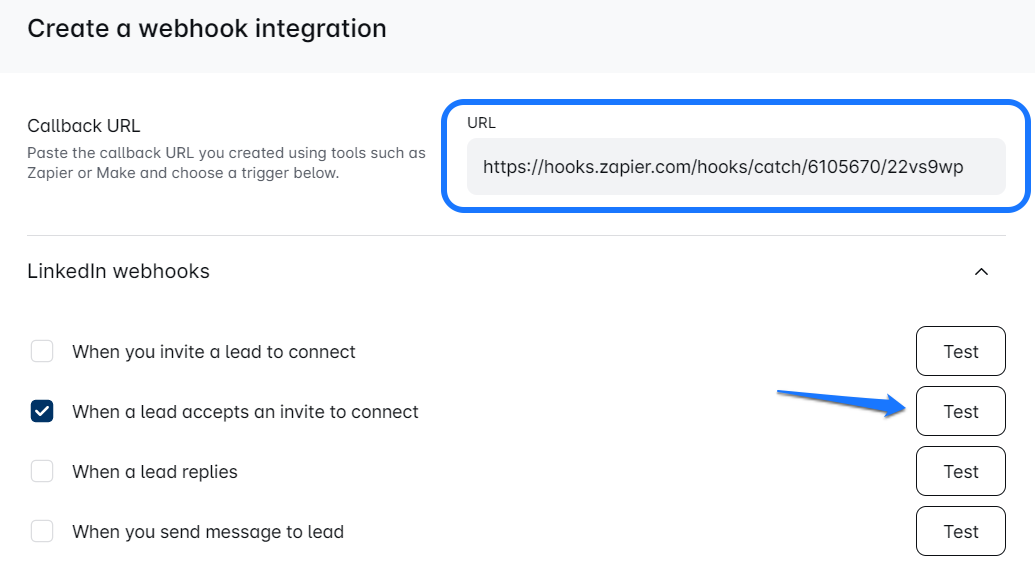 - Go back to the Leadscope and paste the webhook URL into the appropriate field.