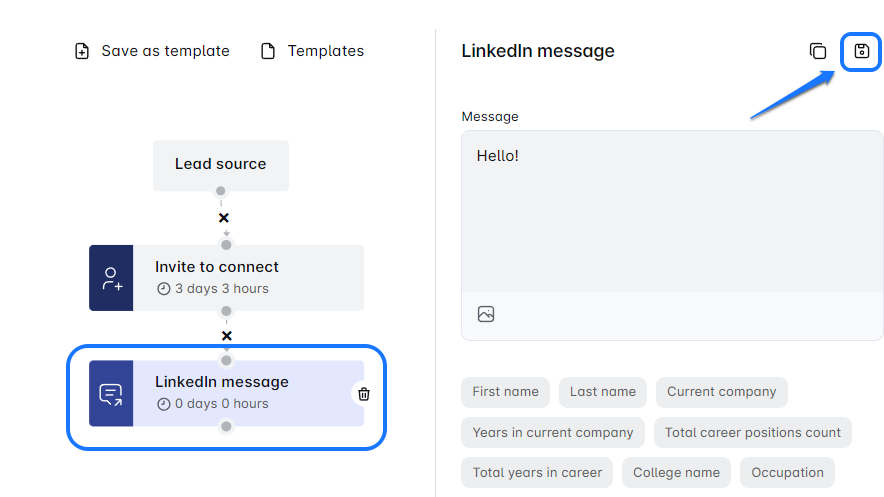 Save time with the Leadscope’s step copy-and-paste feature! Easily duplicate steps like Invites, Messages, or Emails, and customize them in sequence. Save key steps as templates in the Template Library for future campaigns. Streamline your workflow and boost efficiency! 🚀 Need help? We’re here for you.