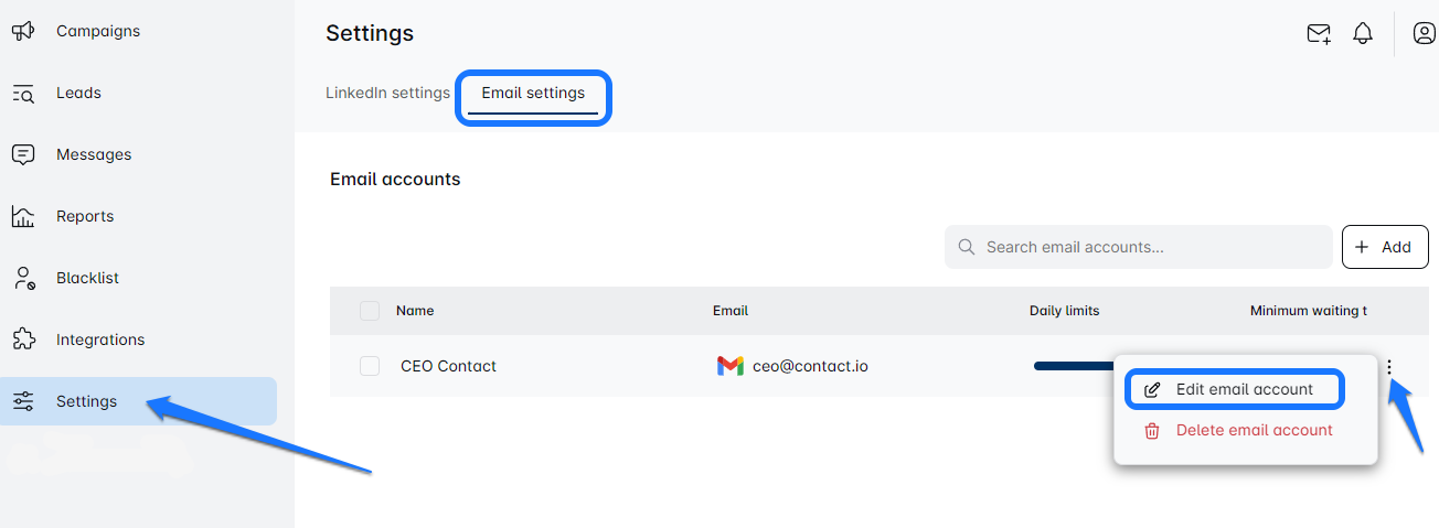 - Click on the ‘Email settings’ tab, where you’ll see all your connected email accounts. 🌐