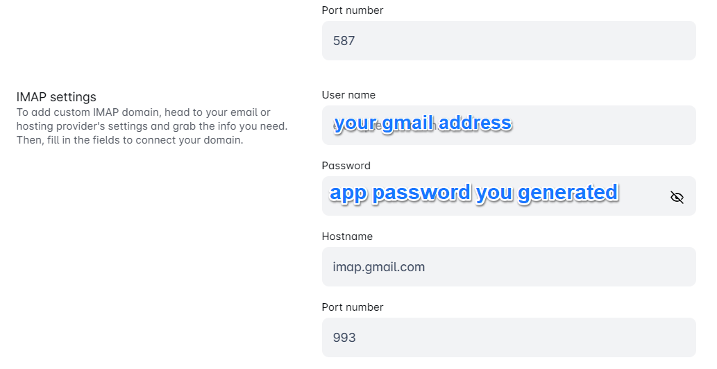 - Password: The app password you just generated.